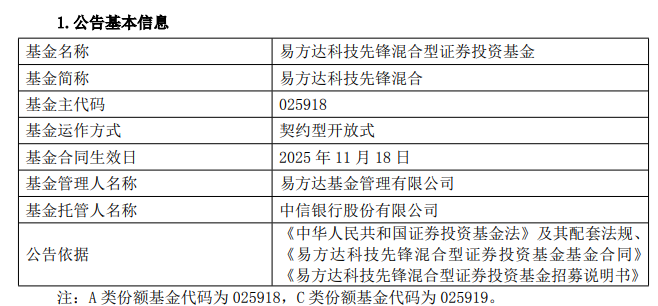 中国经济网北京11月19日电 今日,易方达基金管理有限公司发布关于基金基金合同生效的公告。募集期间净认购金额为1,989,419,983.77元,募集期间认购资金产生的利息为121,683.82元,股份总数为1,989,541,667.59股。基金经理蔡荣成现任易方达基金管理有限公司基金经理。曾任易方达基金管理有限公司基金经理助理、研究部总经理助理、行业研究员。